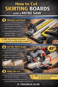 - Use guide rail for straight cuts